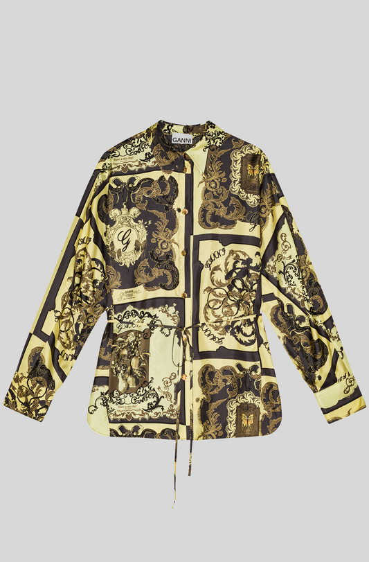 FLOWER BOUQUET-PRINT CHARMEUSE SHIRT