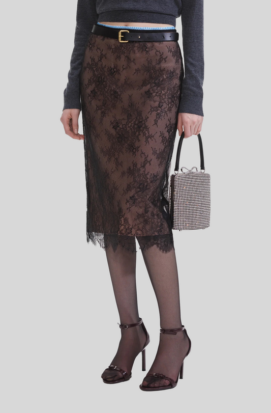 BLACK LACE MIDI SKIRT