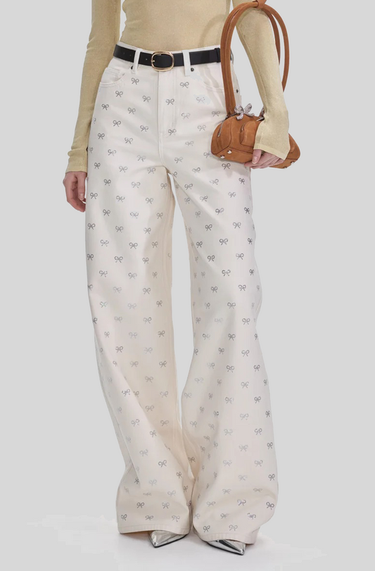 CREAM DENIM DIAMANTE BOW JEANS