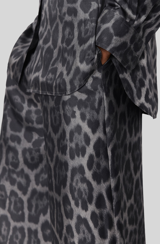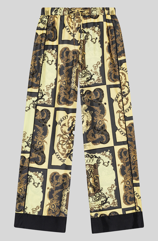 PRINTED SILK TWILL WIDE LEG PANT