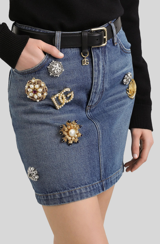 DENIM MINI SKIRT WITH CHARM DETAILS