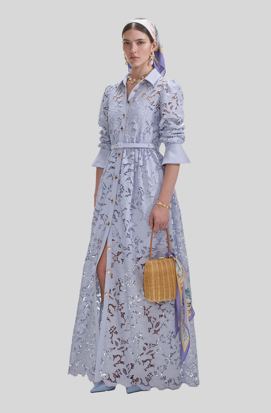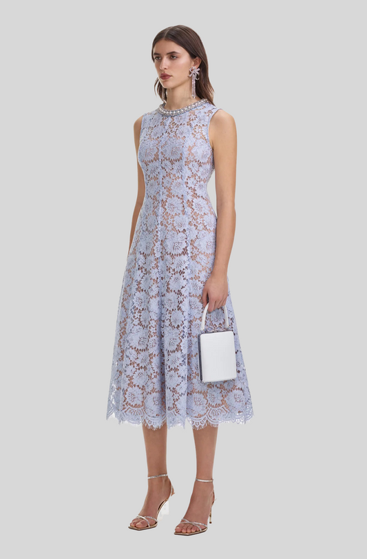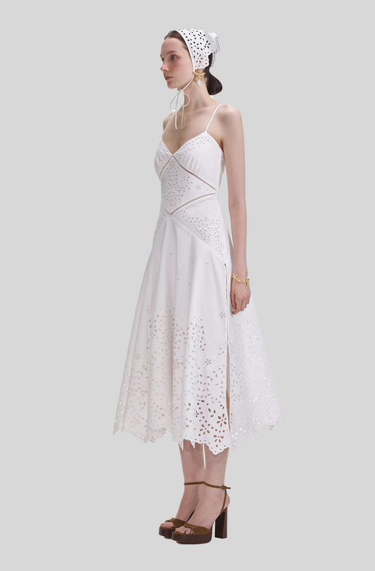 WHITE COTTON EMBROIDERED MIDI DRESS