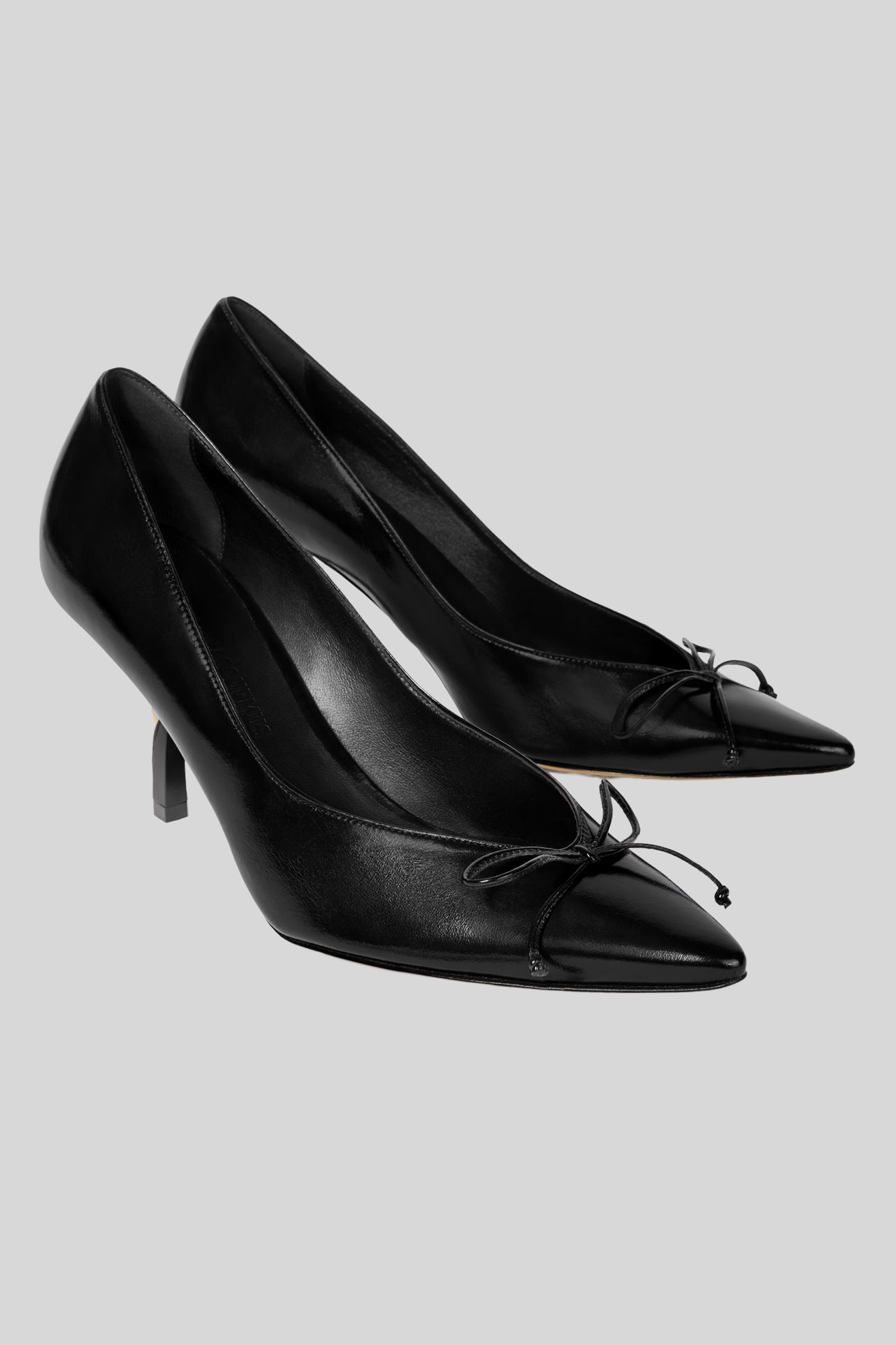 Les Escarpins Tourni Hills Heels in black by Jacquemus combine sculptural flair with everyday polish. Crafted in Italy from smooth leather, they feature an 8 cm asymmetric twisted heel, pointed toe, fixed bow detail and lambskin lining for refined comfort. A standout pump with subtle French attitude.
