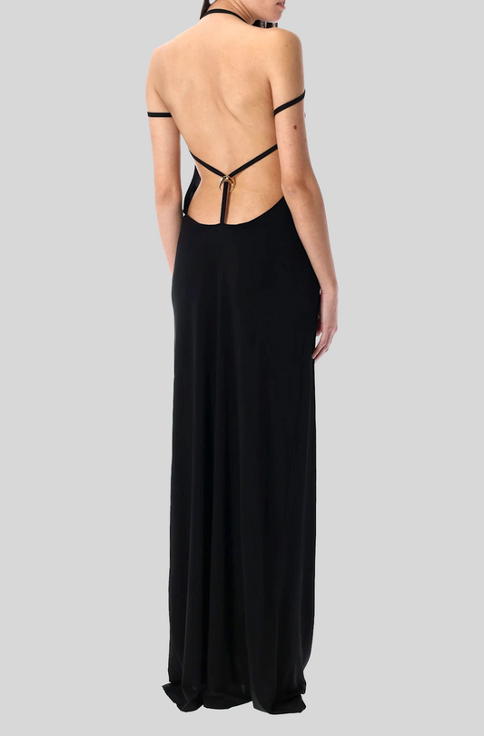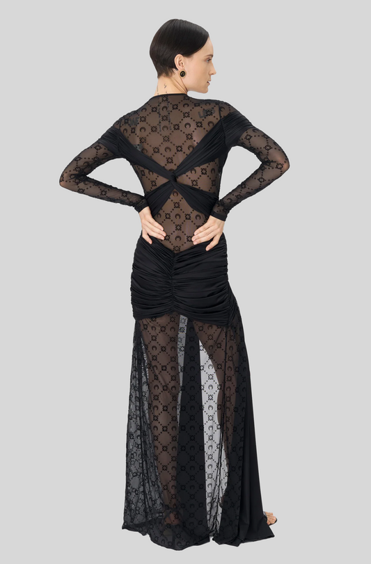 REGENERATED SILK SCARVES LONG FITTED DRESS