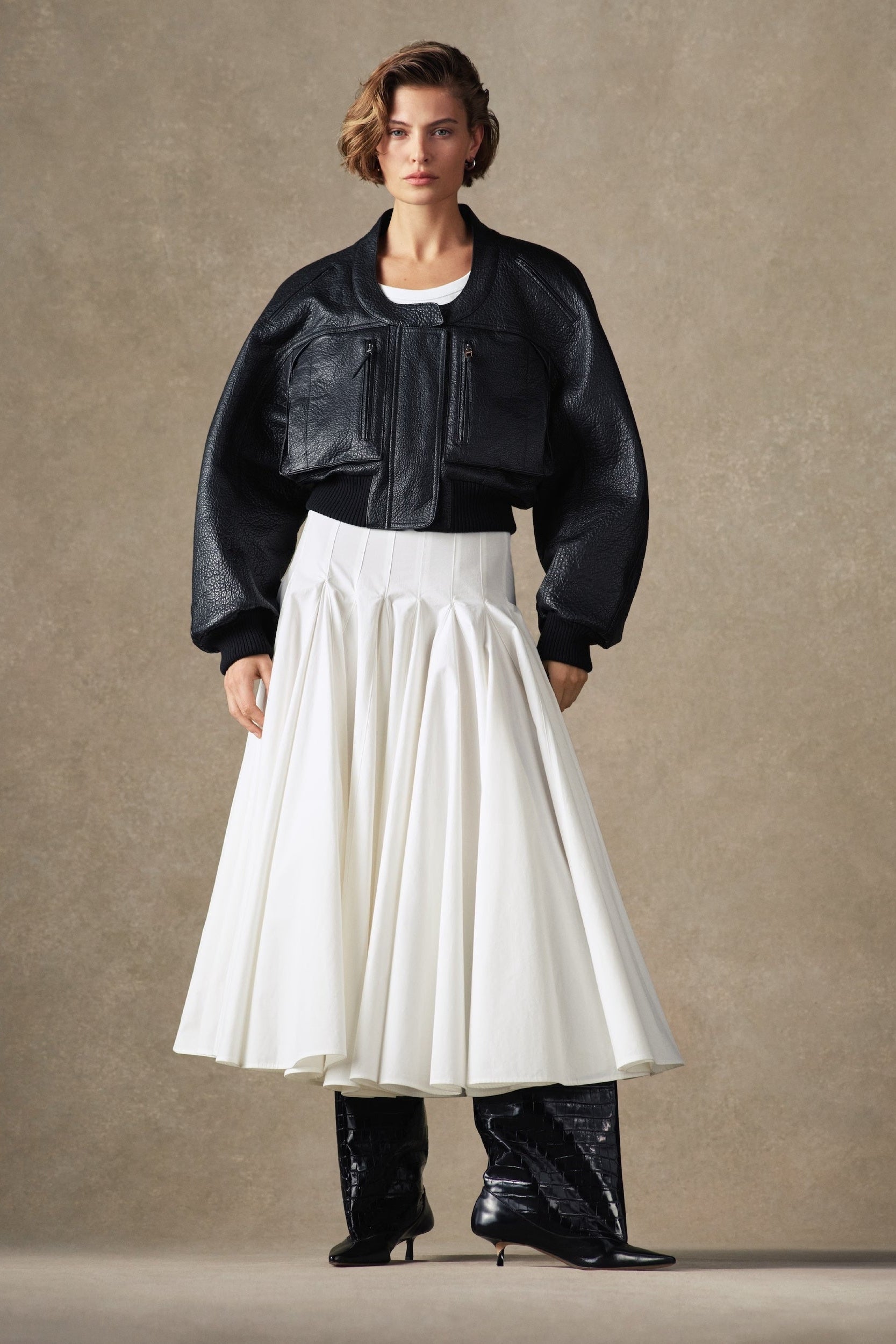 The Le Blouson Tore Jacket in black by Jacquemus is a modern luxe bomber redefined: crafted from grained lambskin leather with an oversized fit, this jacket features a round open neckline with snap button, rounded sleeves, slanted zipped pockets, ribbed cuffs and hem, and subtle embossed logo detailing at the back. Fully lined for comfort, it fuses contemporary tailoring with effortless French cool.