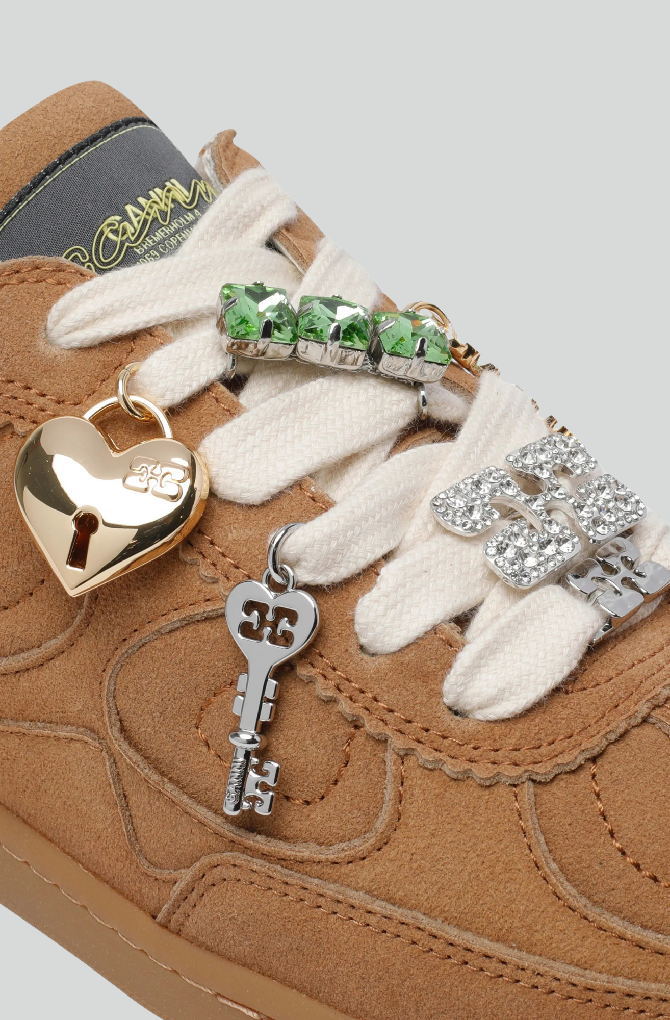 These sneakers feature an upper with butterfly-inspired edges and a collar detail. They have a hidden wedge, a stitched gum sole and a GANNI logo on the side.