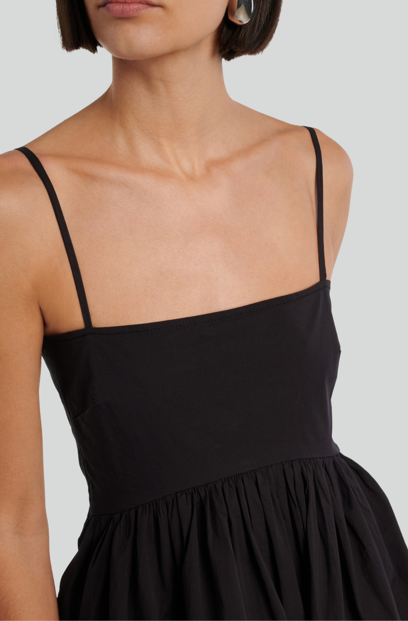 This GANNI mini dress is crafted from a soft organic cotton blend and features spaghetti straps, side pockets and frill detailing.