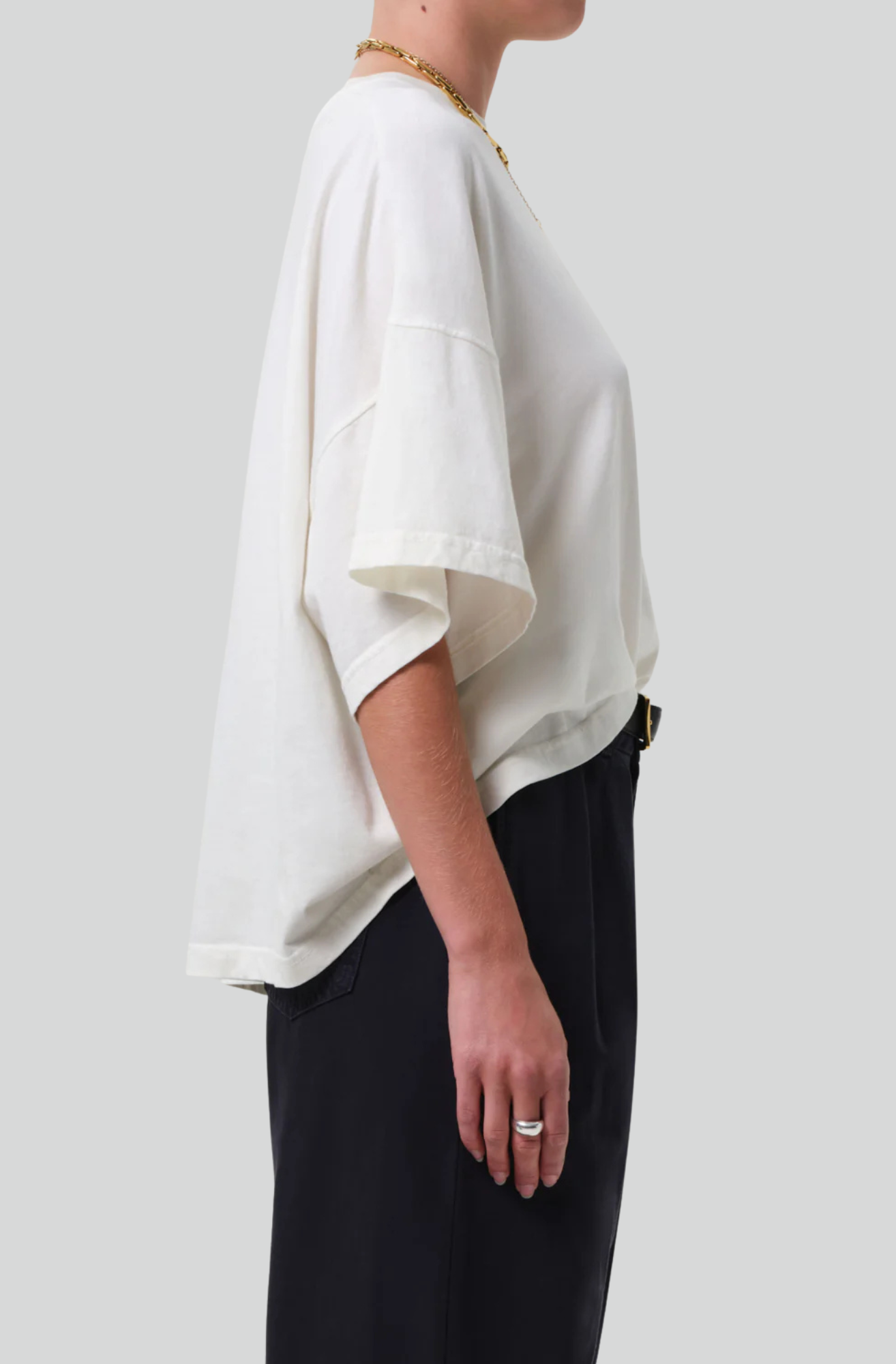 The Cape Tee is an everyday essential, crafted from ultra-soft, lightweight organic cotton jersey. Designed with a relaxed fit and subtle drape, it feels effortless and easy. Perfect with vintage denim or layered under tailoring.