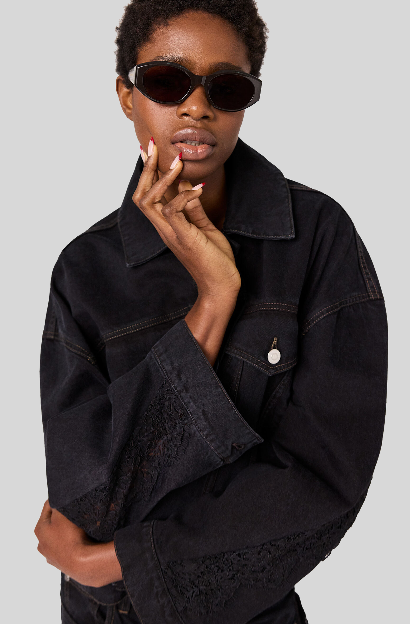 LACE PANELLED DENIM JACKET
